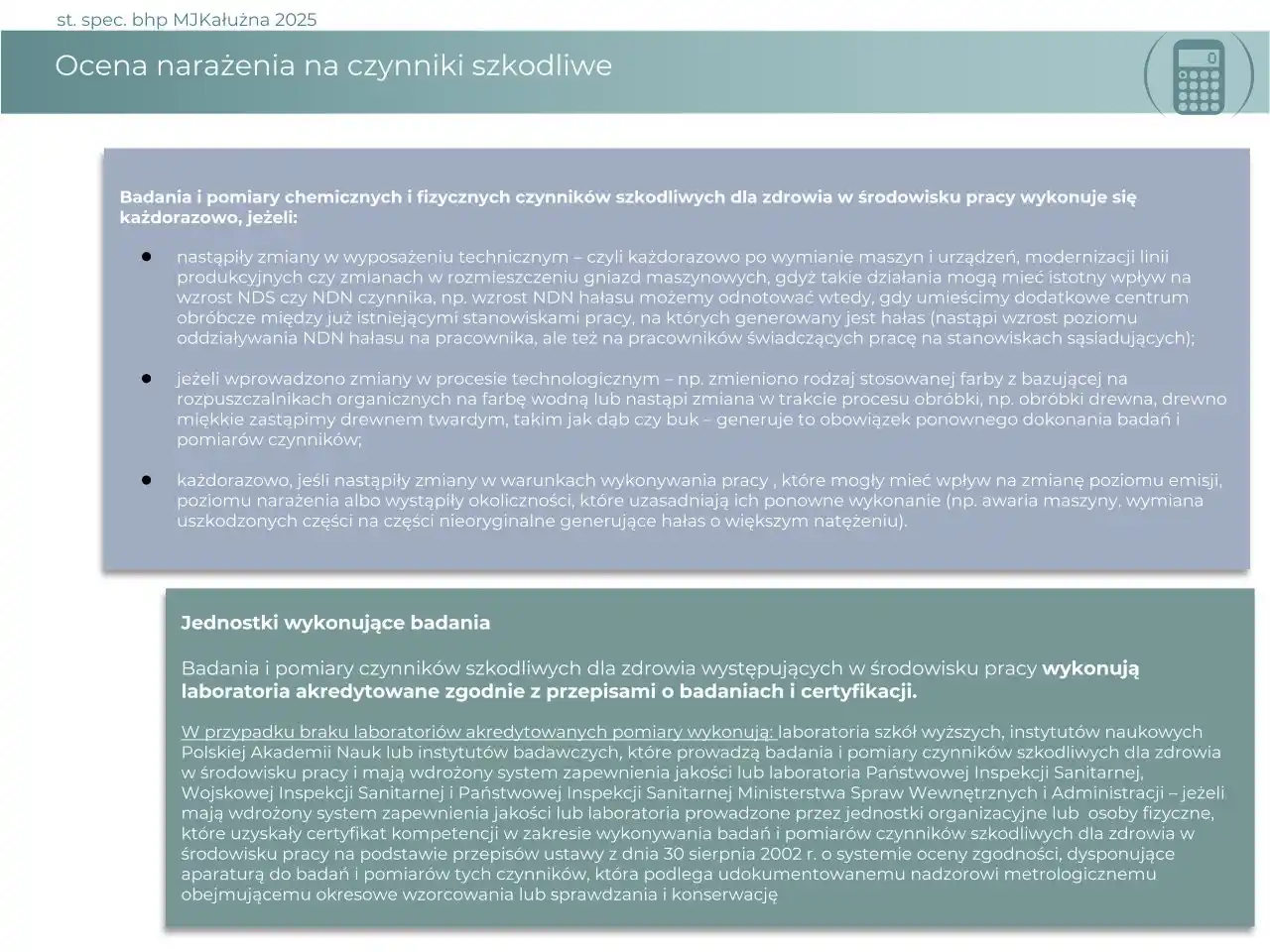 Praktyczna prezentacja na temat oceny czynników szkodliwych na stanowiskach pracy.