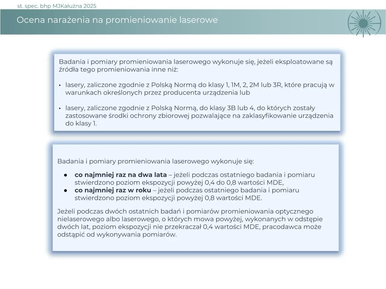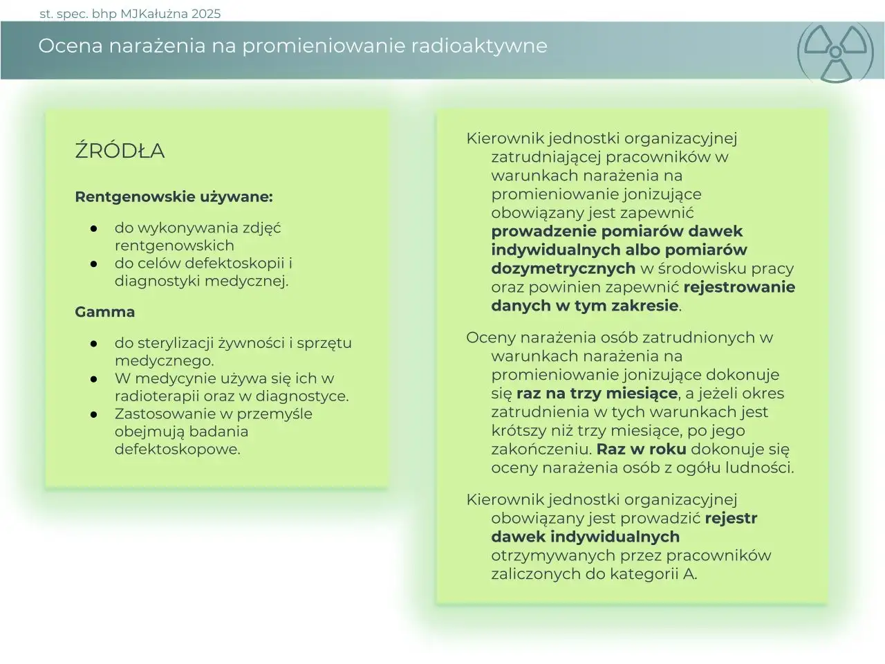 Może być wykorzystana jako moduł szkolenia okresowego lub jako część szkolenia dotyczącego zarządzania ryzykiem w zakładzie pracy.