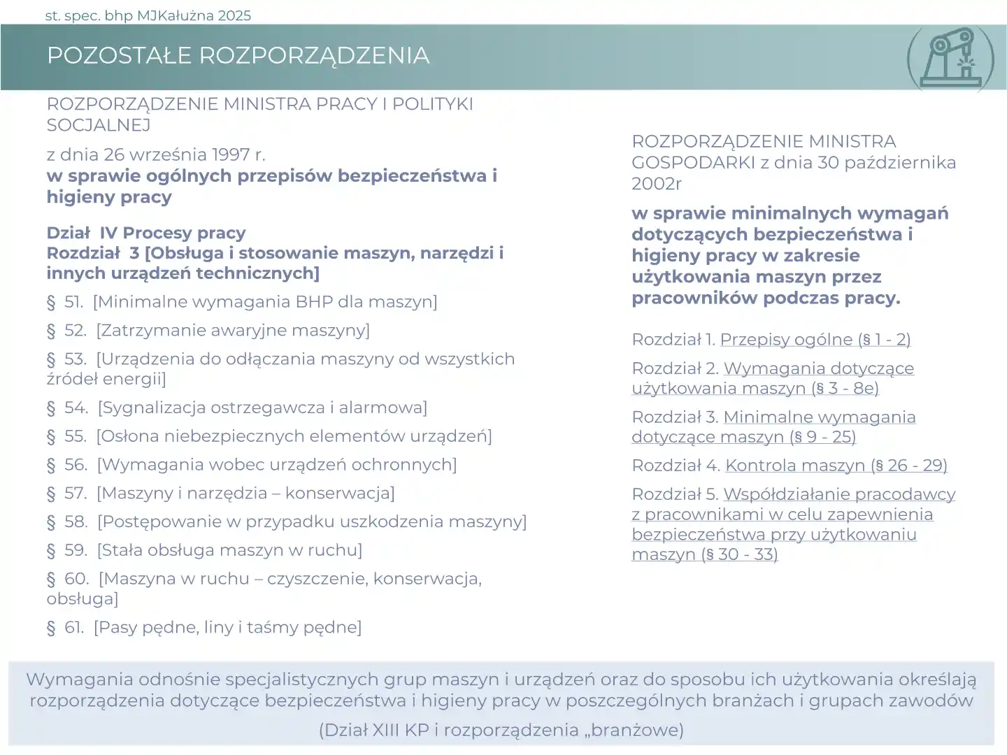 Prezentacja wymagań prawnych i obowiązków pracodawcy odnośnie maszyn i urządzeń.