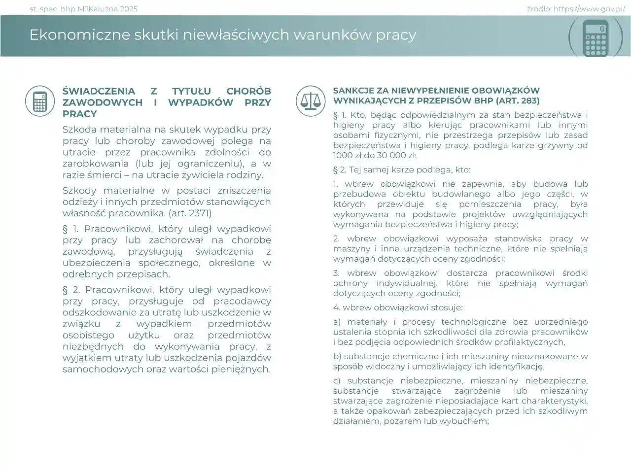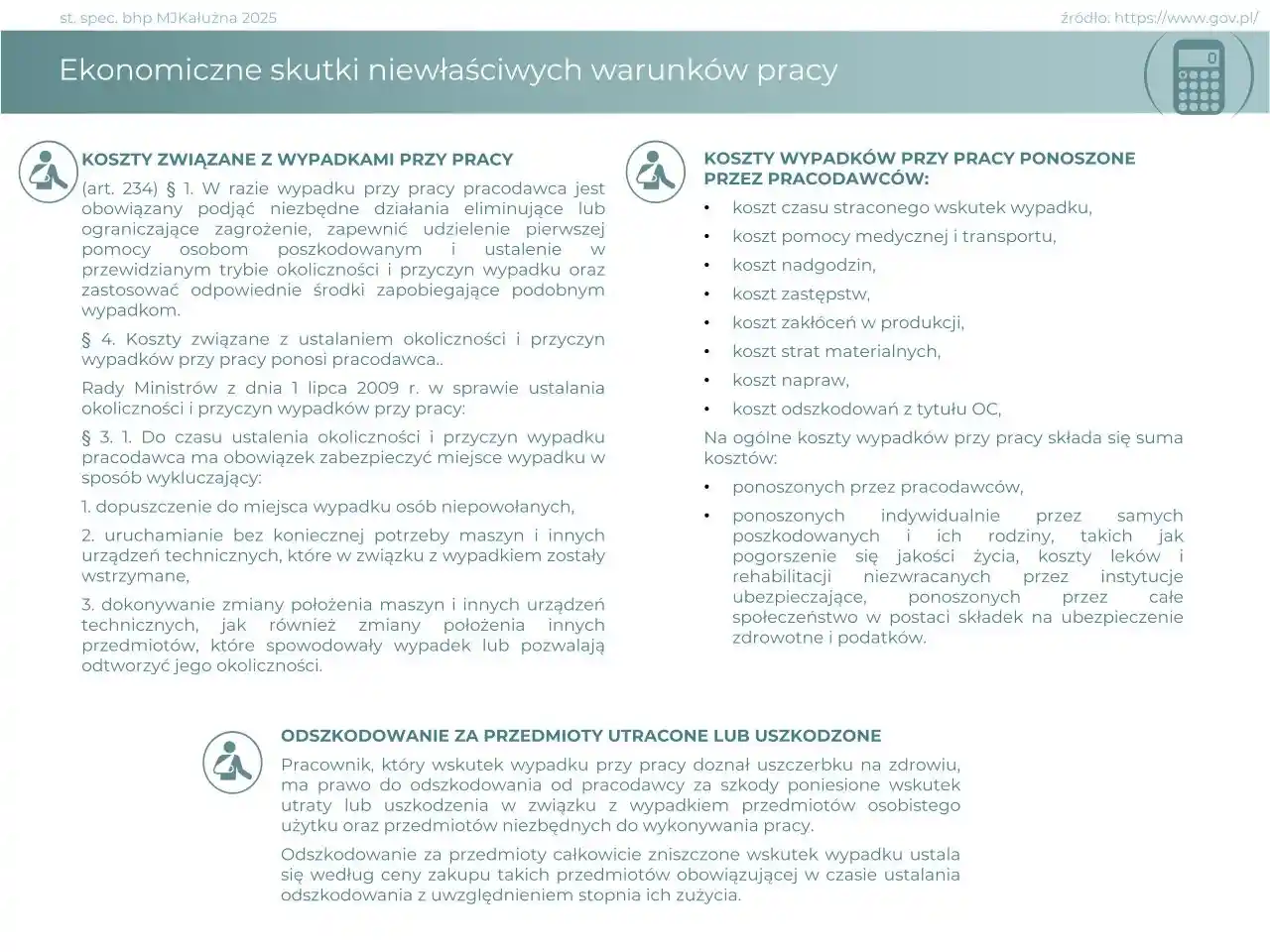 Praktyczna prezentacja do szkoleń okresowych bhp na temat ekonomicznych skutków wypadków przy pracy i chorób zawodowych.