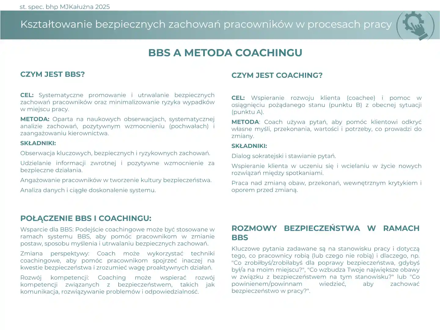 Praktyczna prezentacja na temat kształtowania bezpiecznych i higienicznych warunków pracy i zachowań pracowników.