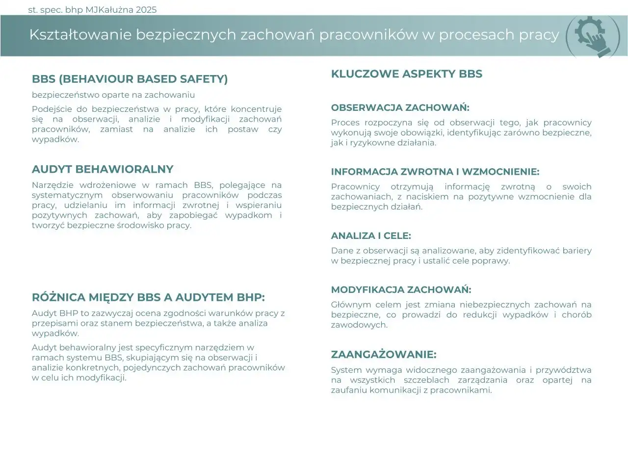 Praktyczna prezentacja na temat kształtowania bezpiecznych i higienicznych warunków pracy i zachowań pracowników.