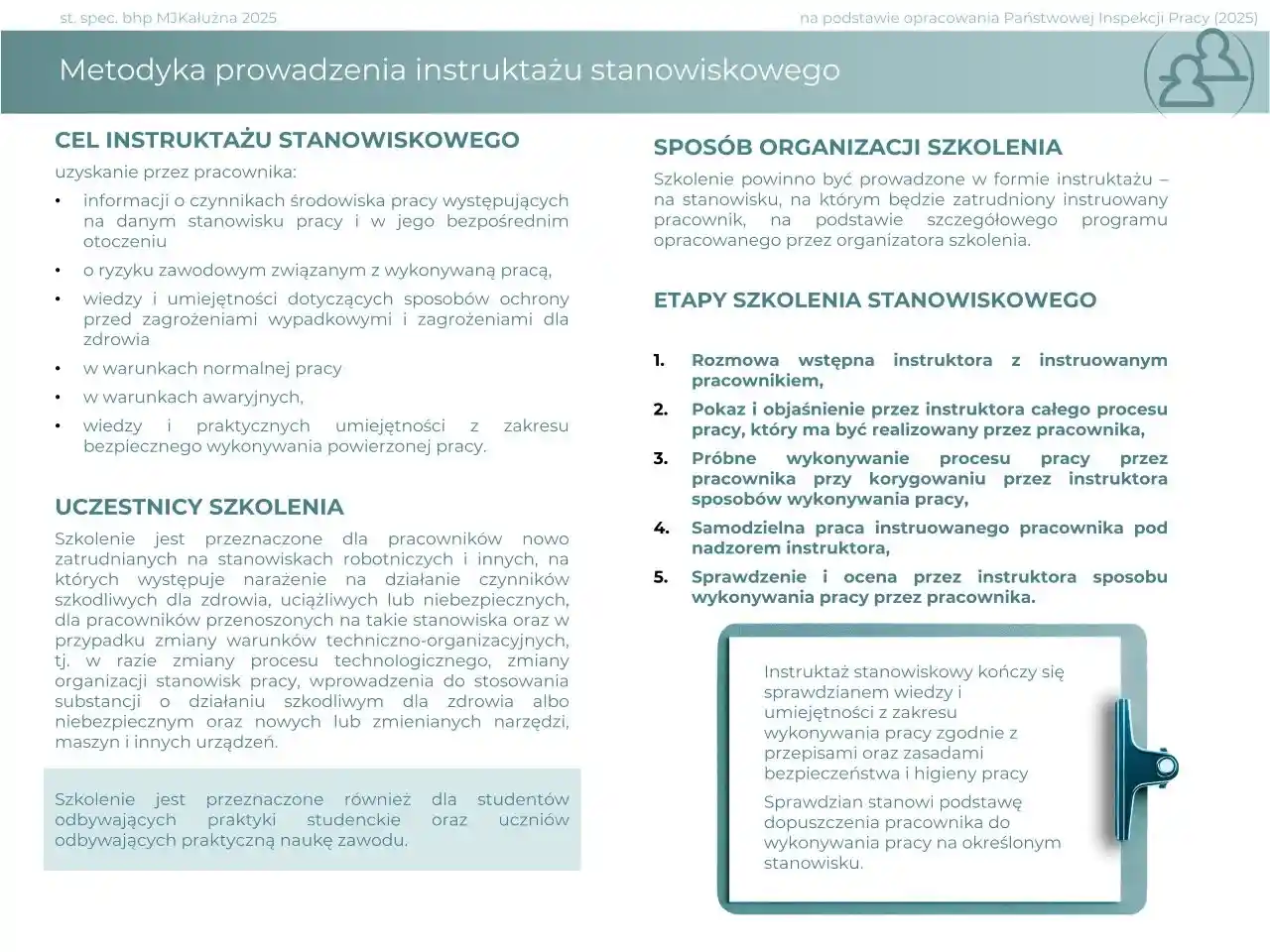 Praktyczna prezentacja na temat metodyki prowadzenia szkoleń stanowiskowych bhp.