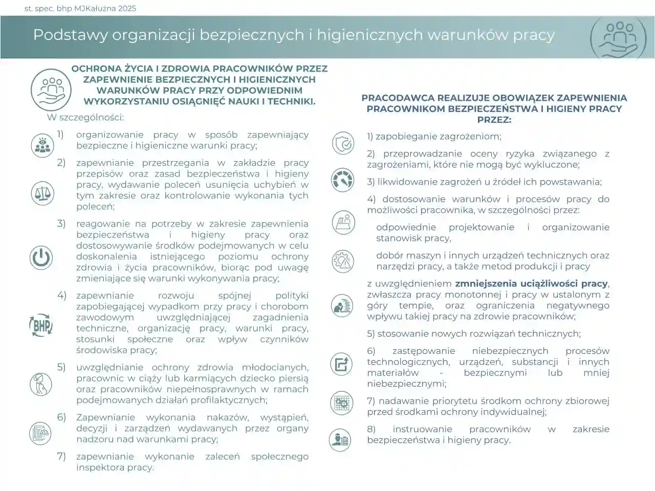 Praktyczne szkolenie bhp na temat podstawowych zasad organizowania bezpiecznych i higienicznych warunków pracy.
