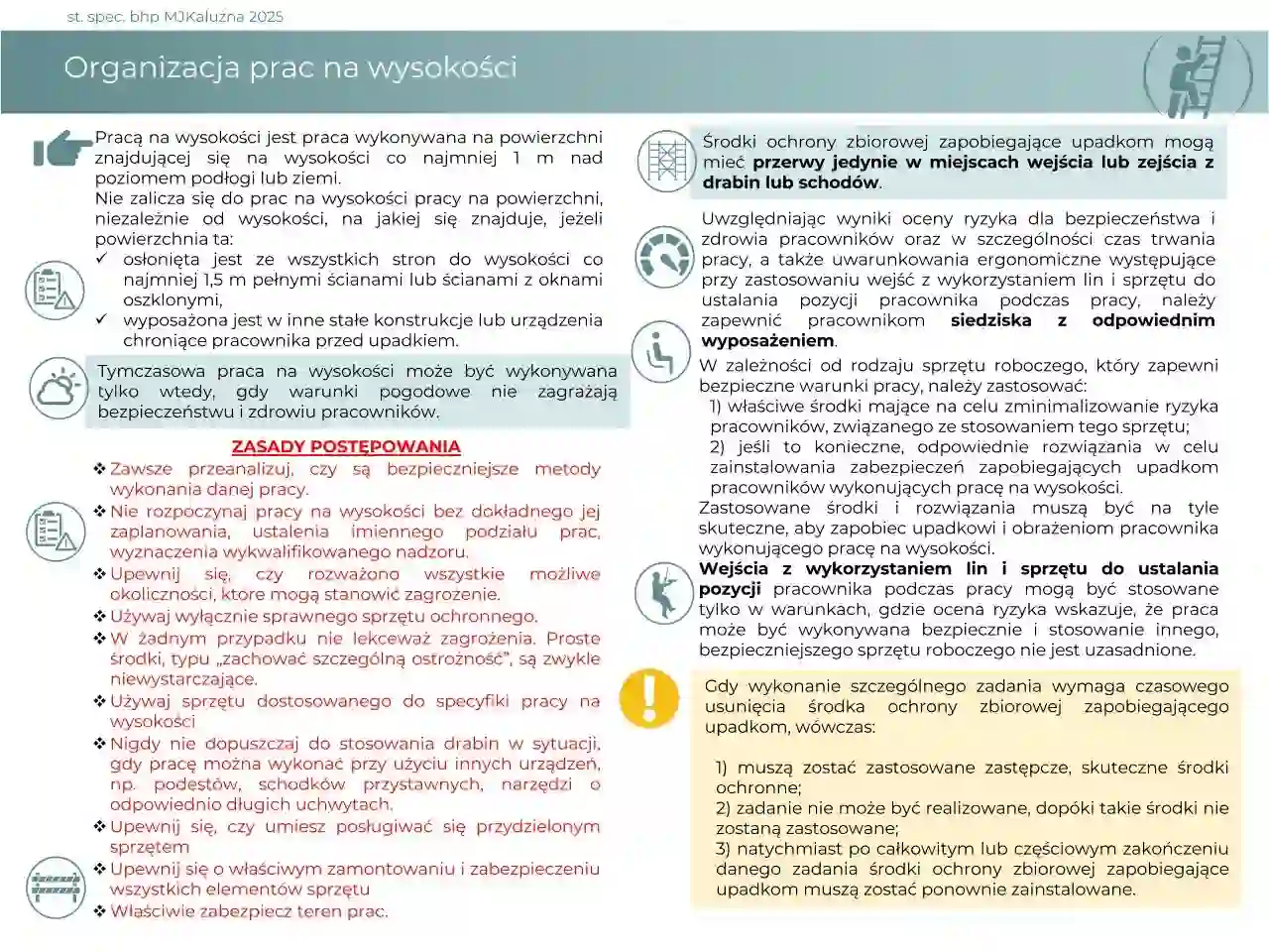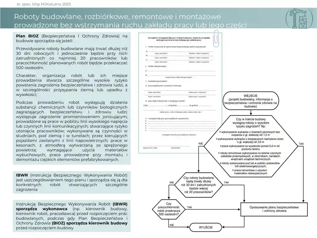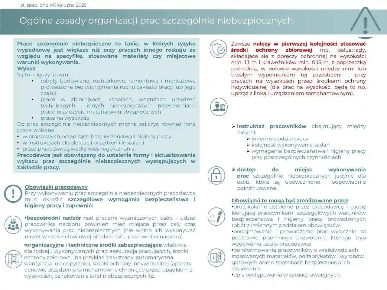 Praktyczna prezentacja na temat organizacji bezpiecznych i higienicznych warunków wykonywania prac szczególnie niebezpiecznych