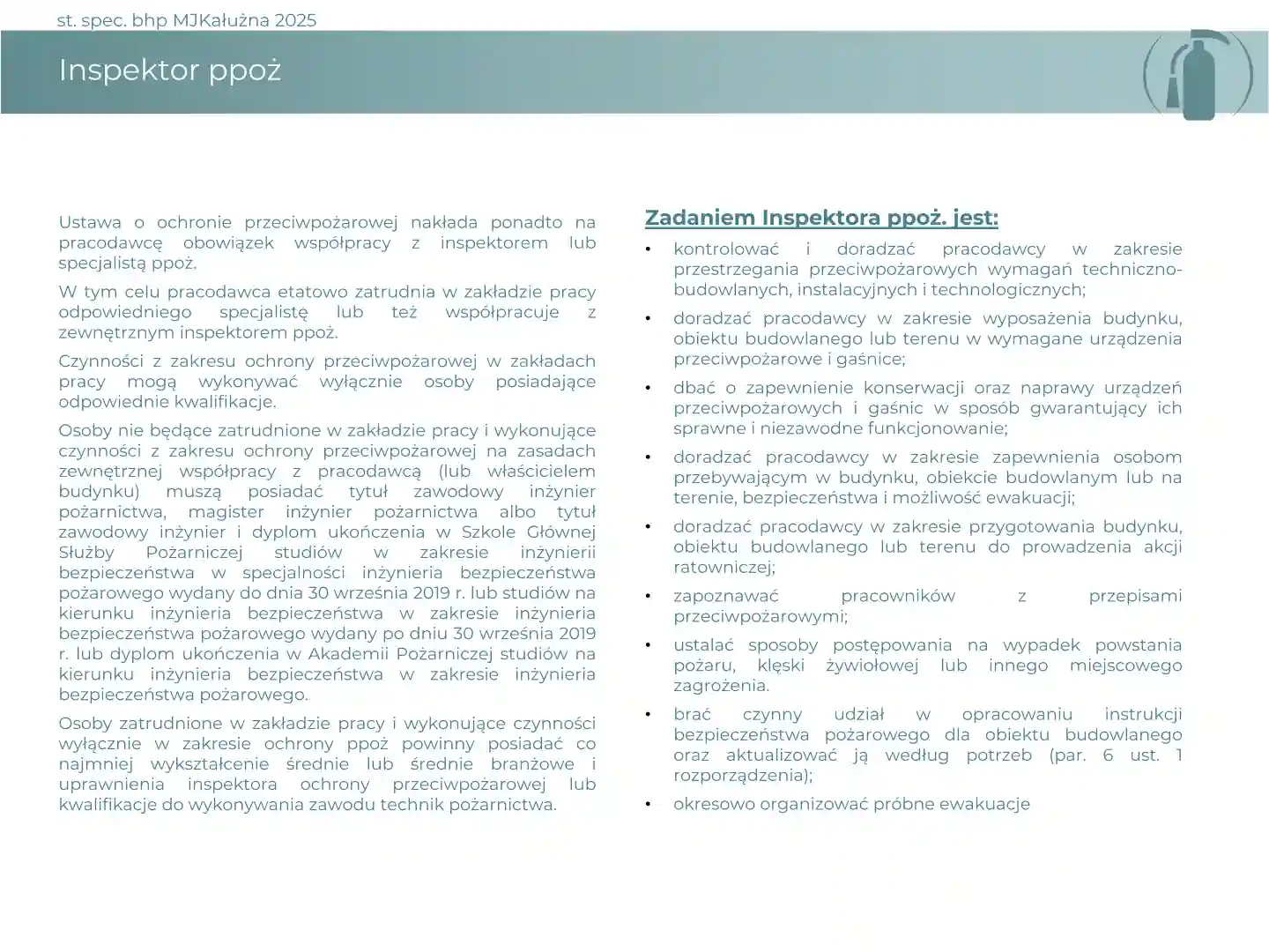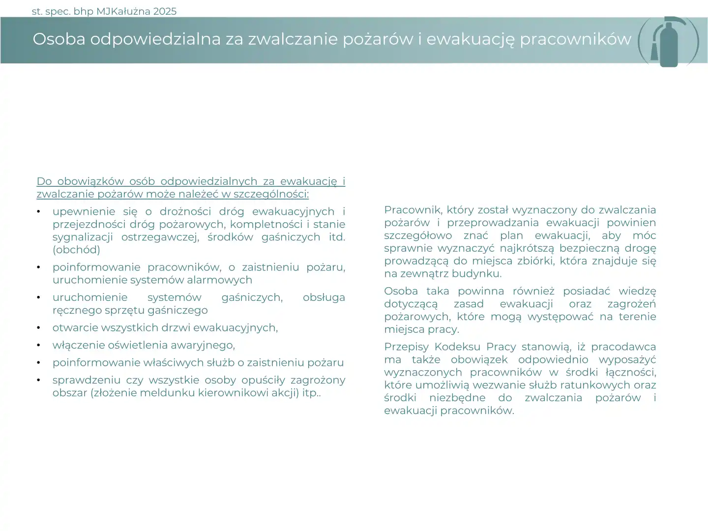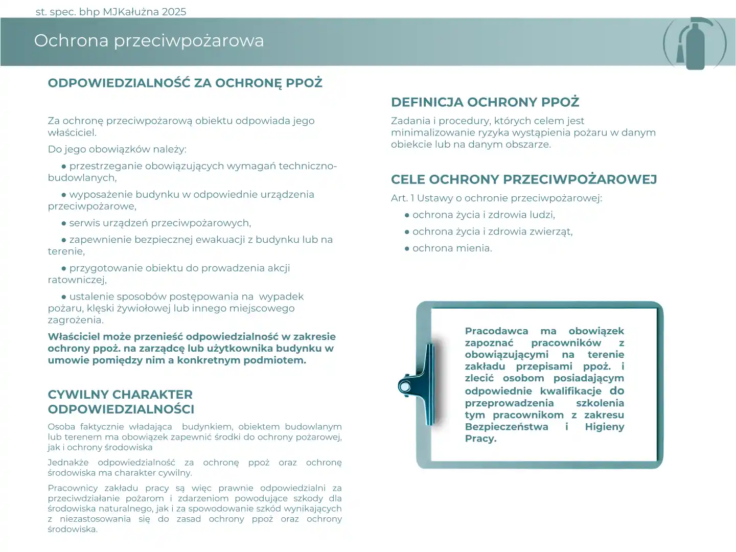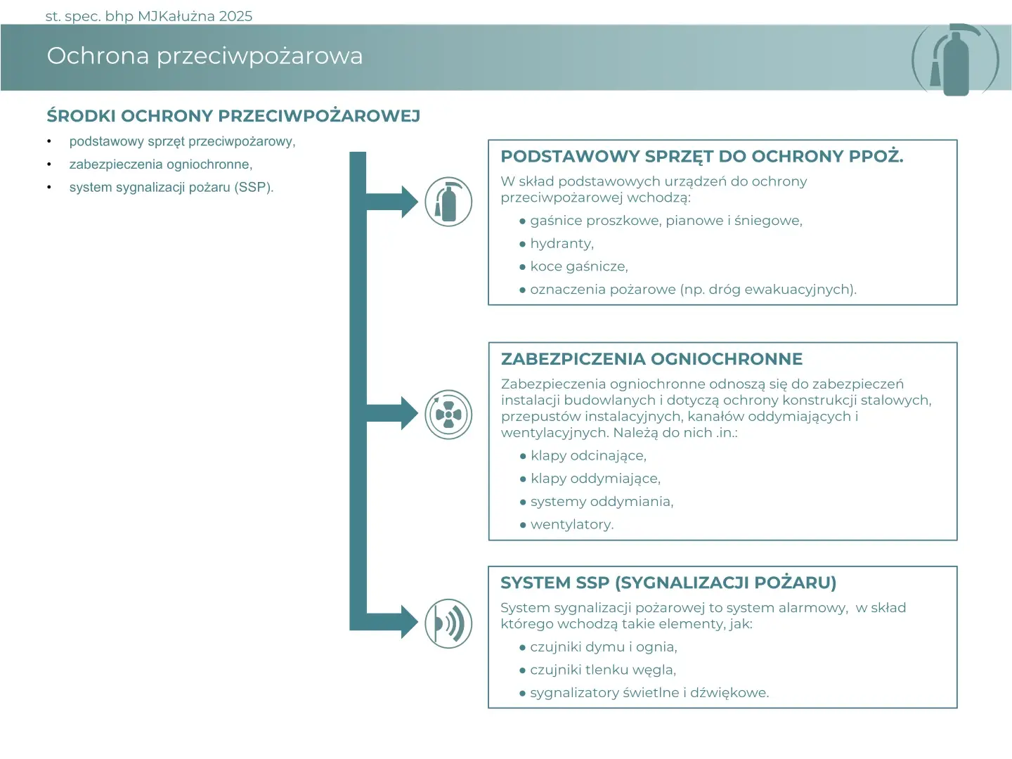 Materiał szkoleniowy na temat problemów ochrony przeciwpożarowej w przedsiębiorstwie.