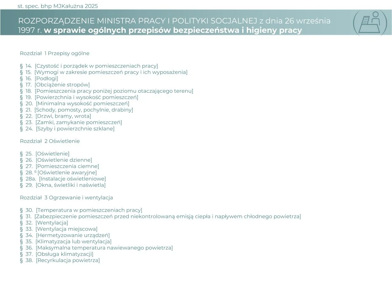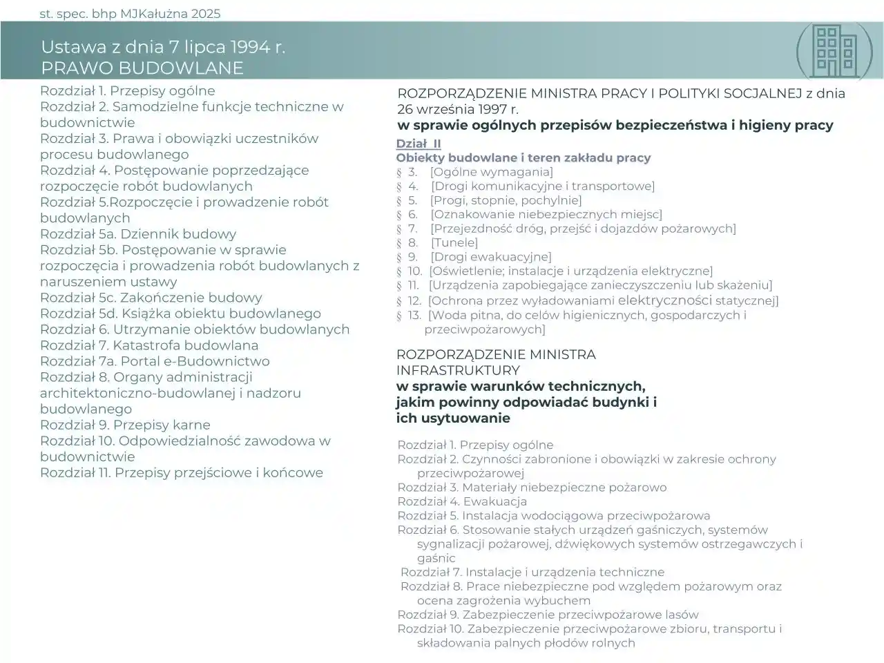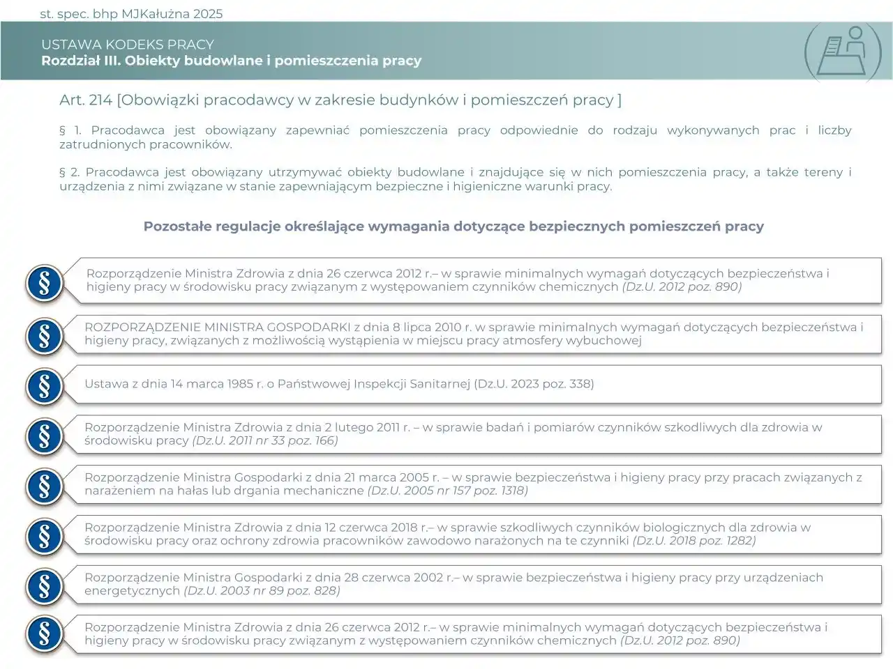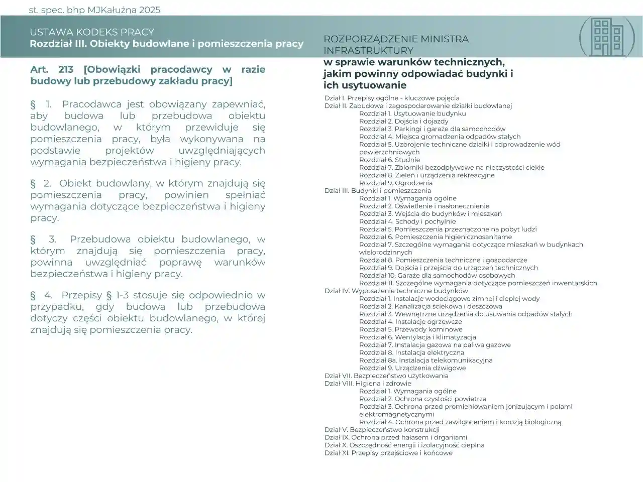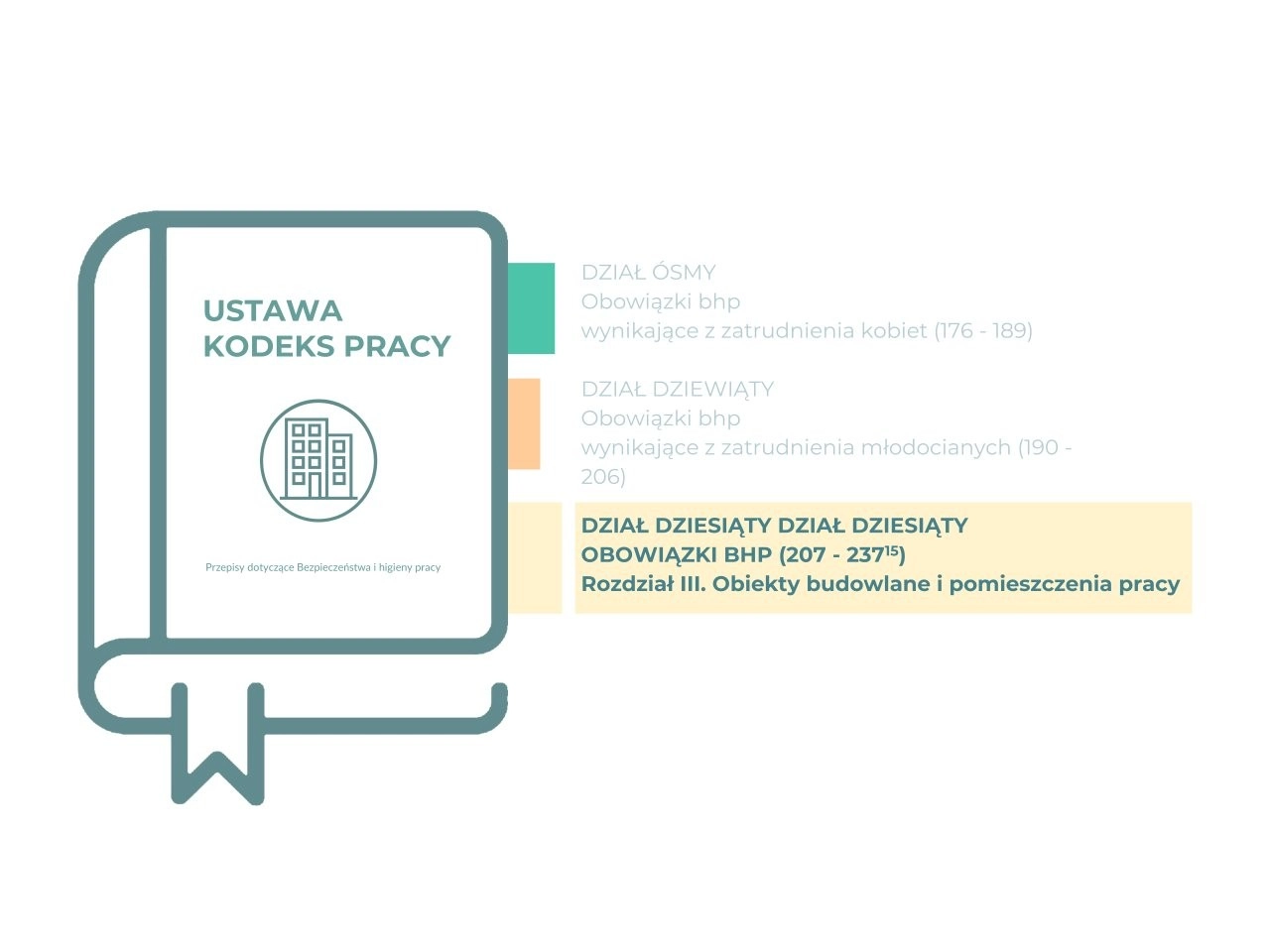Prezentacja wymagań prawnych i obowiązków pracodawcy odnośnie budynków i pomieszczeń w zakładzie pracy.