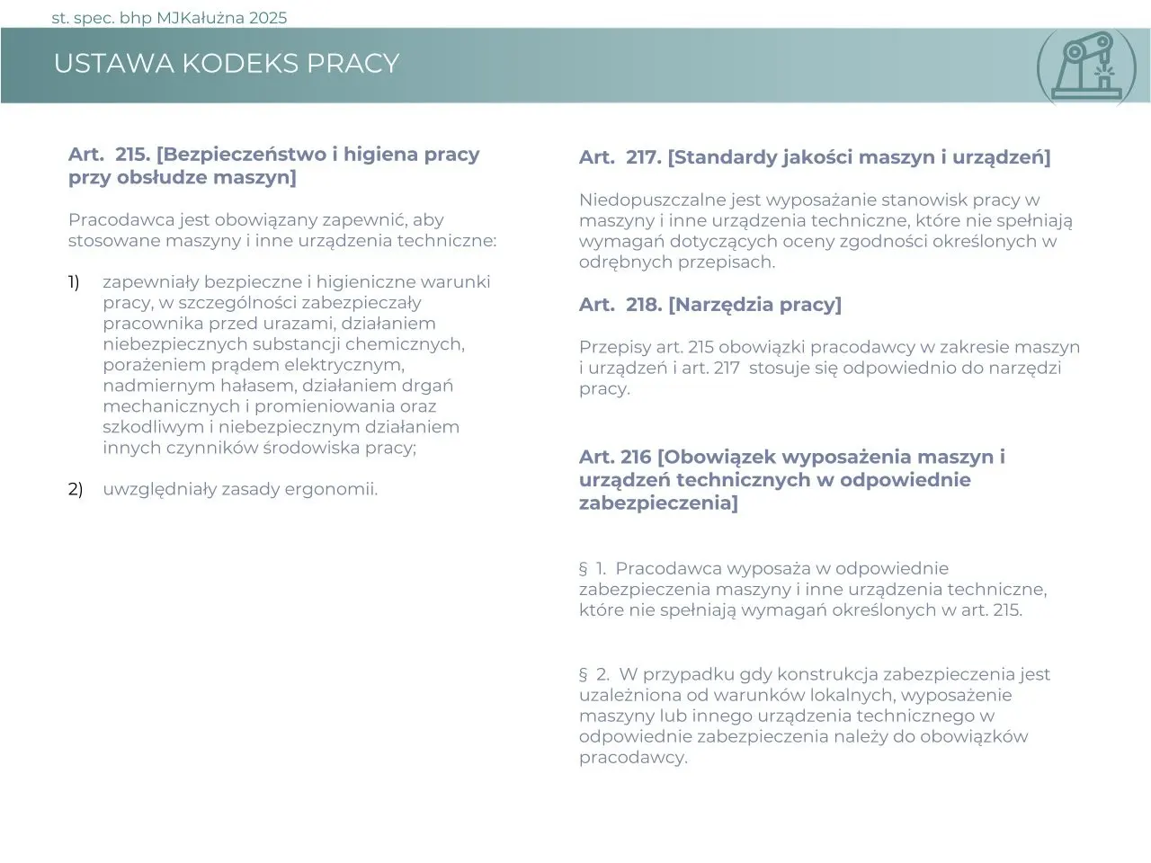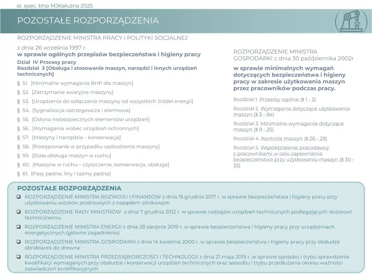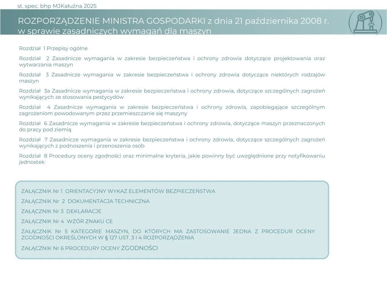 Prezentacja wymagań prawnych i obowiązków pracodawcy odnośnie maszyn i urządzeń.