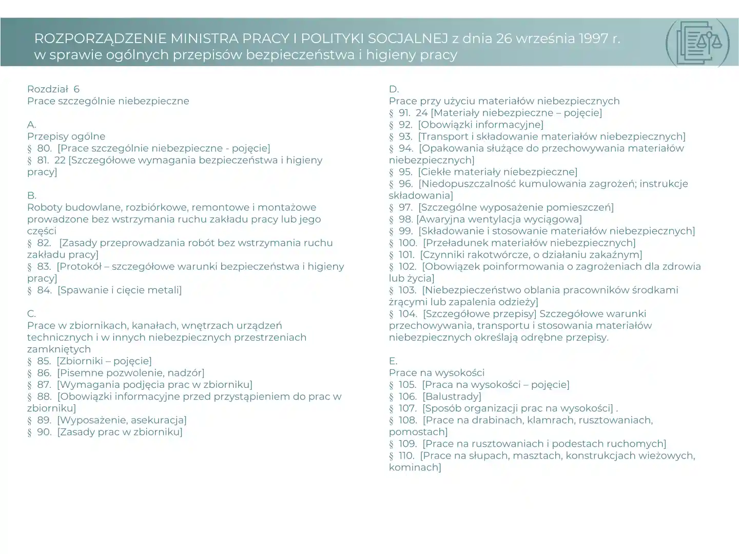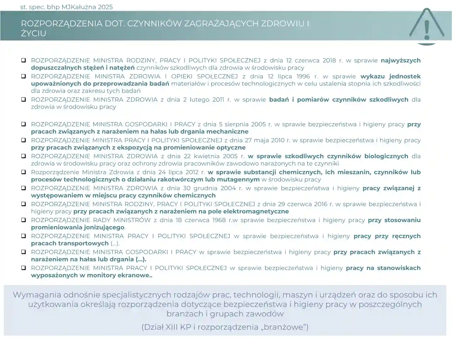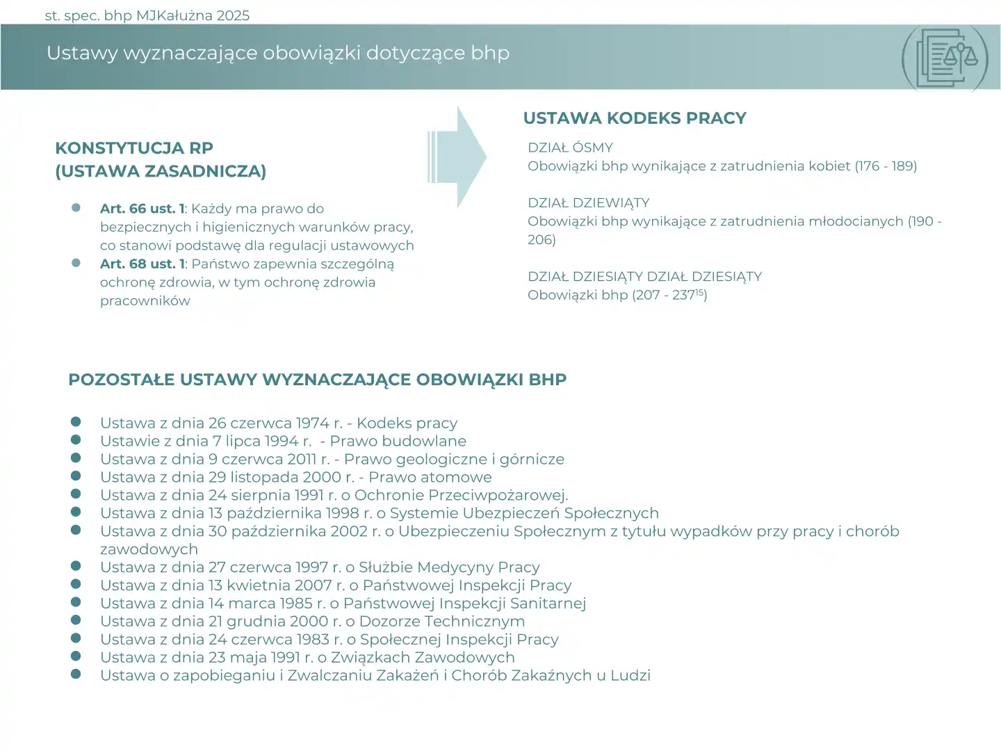 Krótko przedstawia strukturę oraz ogólnie charakteryzuje przepisy bezpieczeństwa i higieny pracy