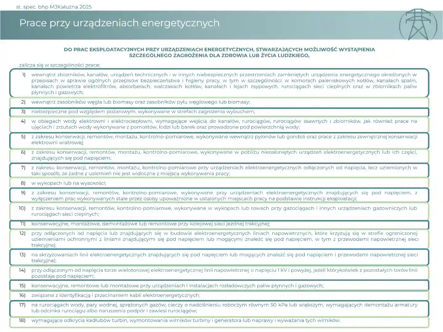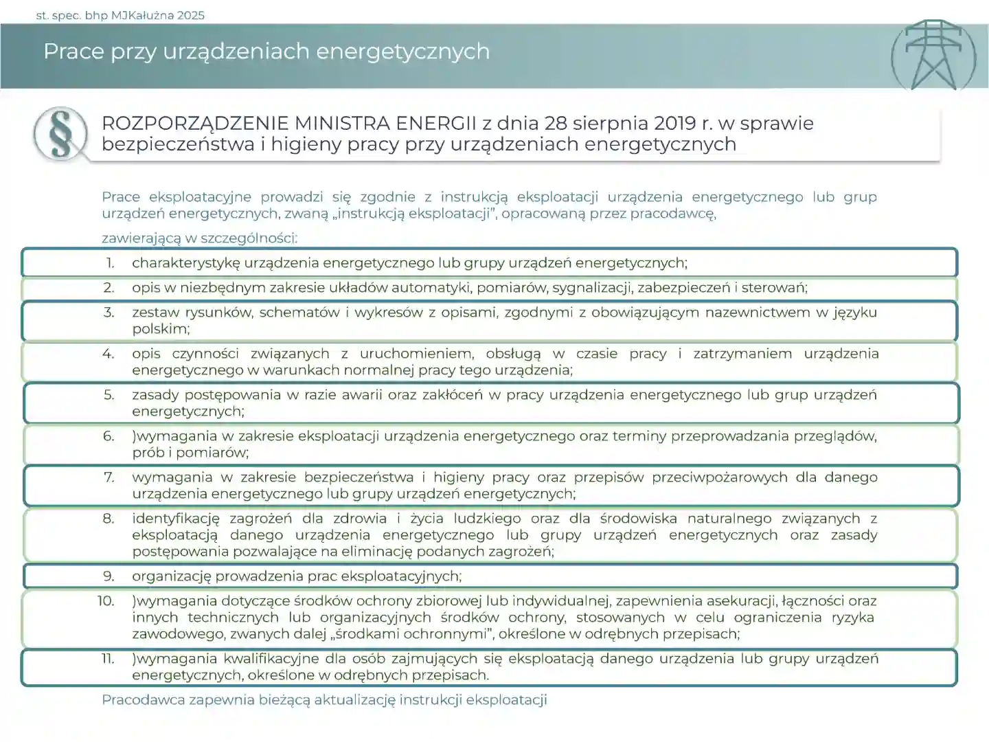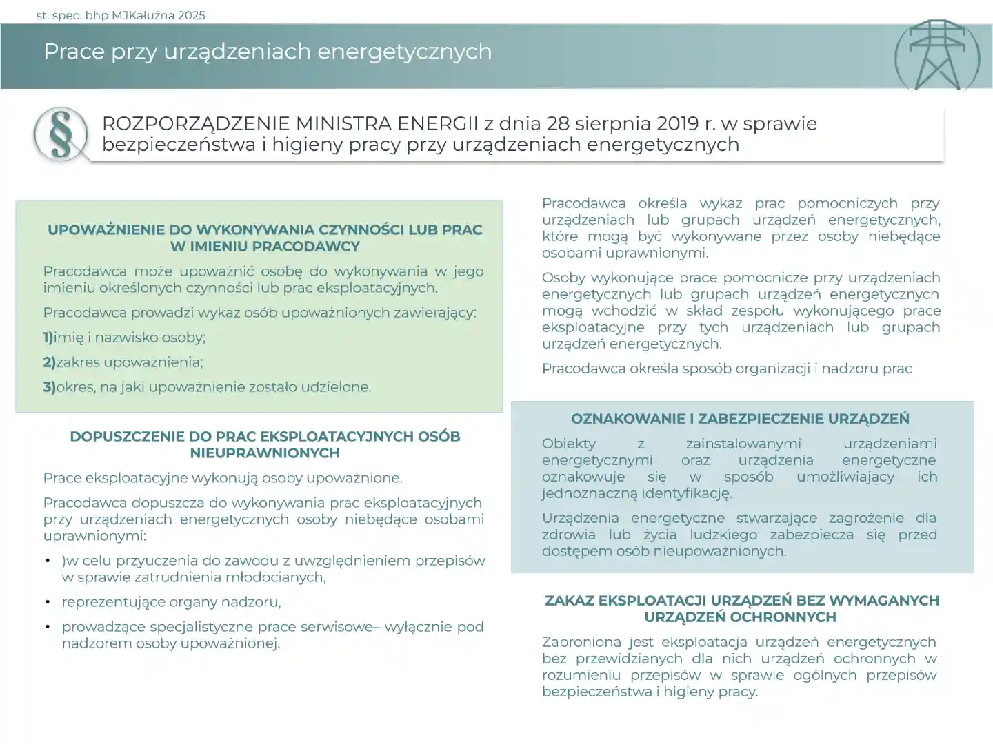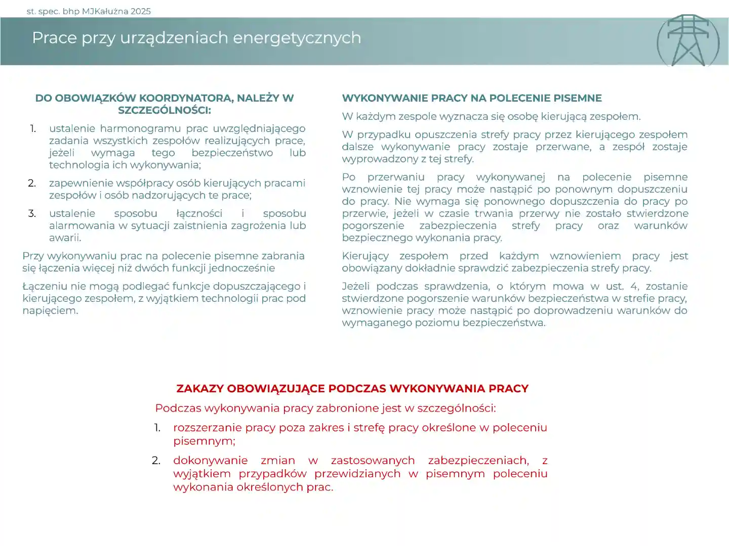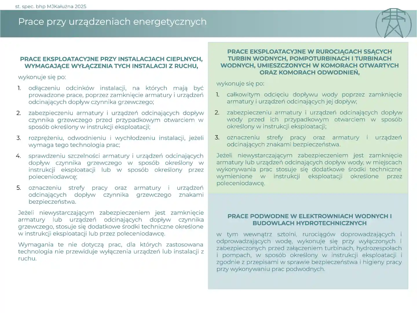 Prezentacja podstawowych wymagań dotyczących organizacji pracy przy urządzeniach energetycznych.
