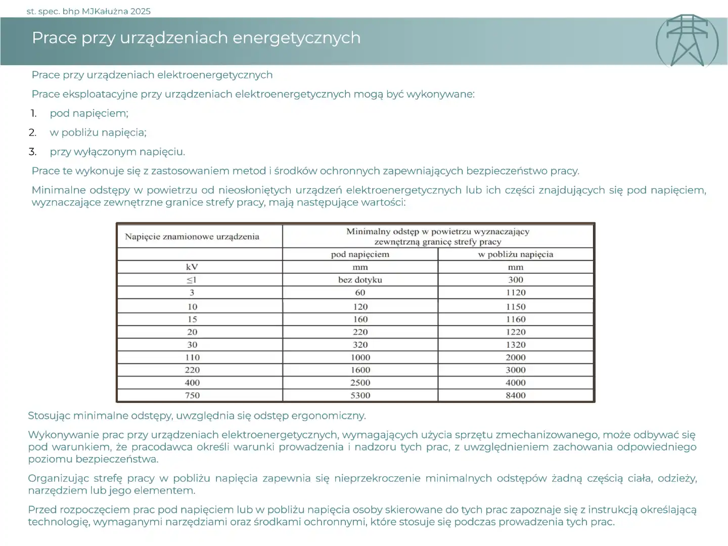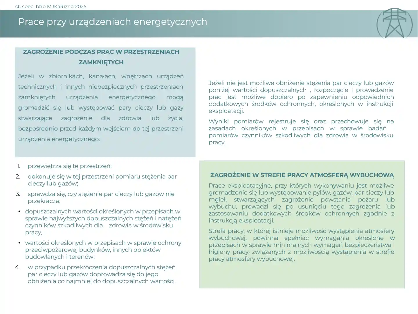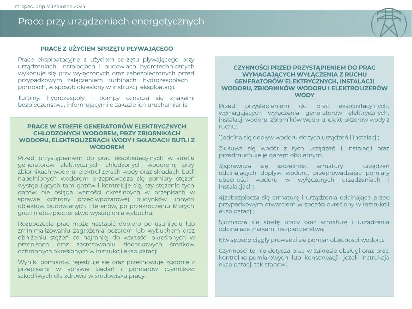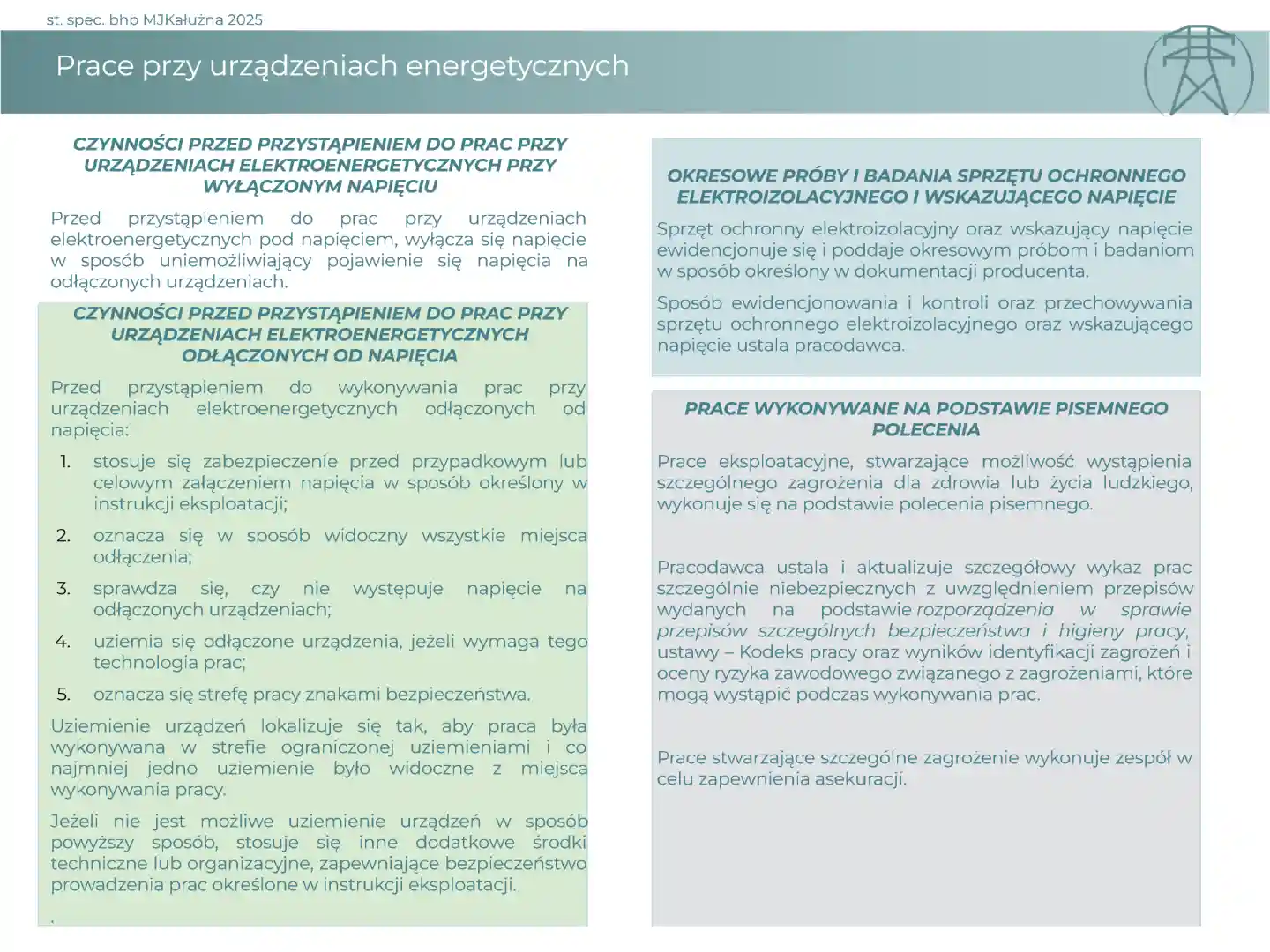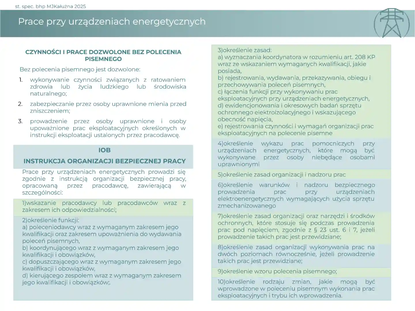 Prezentacja podstawowych wymagań dotyczących organizacji pracy przy urządzeniach energetycznych.