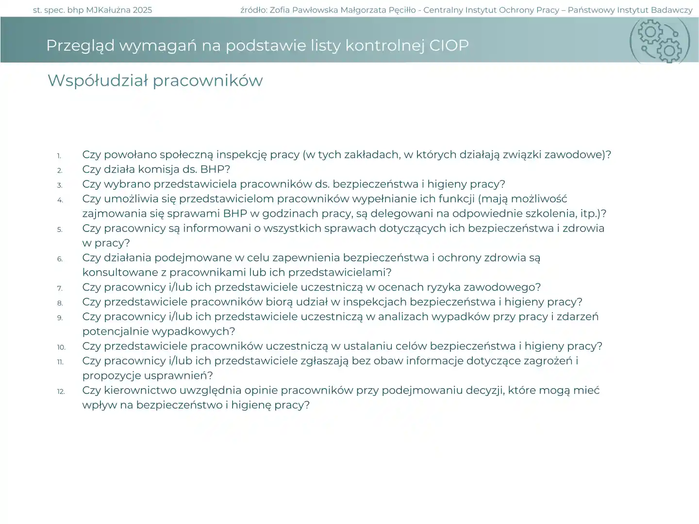 Przydatne narzędzie do prowadzenia szkoleń okresowych bhp oraz szkoleń wstępnych bhp dla osób kierujących pracownikami.